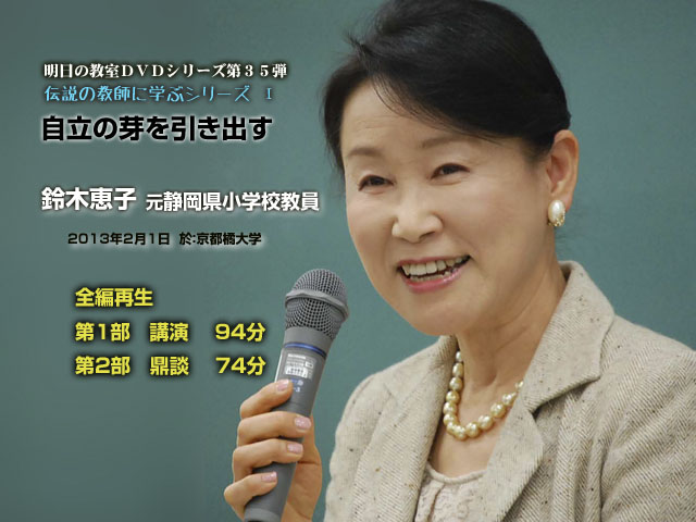 教育に求められるものが振り子のように揺れ動き、学校や教員に対する期待が多様化する現実の前に、日々、誠実に取り組む先生方が困惑し、「本当に大切なもの」を見失ってしまうことがないよう願っています。 私の話を聴いて、「教師になってよかった!」「教師の仕事に再び誇りをもてるようになった。」「今すぐ教室に戻って、子ども達に会いたい!」と言って下さる先生方の言葉に背中を押され、DVD化のはこびとなりました。 教員にとって「本当に大切なもの」はたったひとつ…それは、子ど も達から笑顔と自立の力を引き出すこと。その手だての具体を、私 が若い頃に担任させていただいた素敵な子ども達との物語の一端から感じ取っていただければ幸いです。